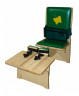 К сидению может прилагаться прикрепляемый складной столик с покрытием из ламинированного пластика с полукруглой выемкой. Столик подвешивается на угловое сидение и может регулироваться по глубине посадки (по расстоянию от края столешницы до спинки сидения).